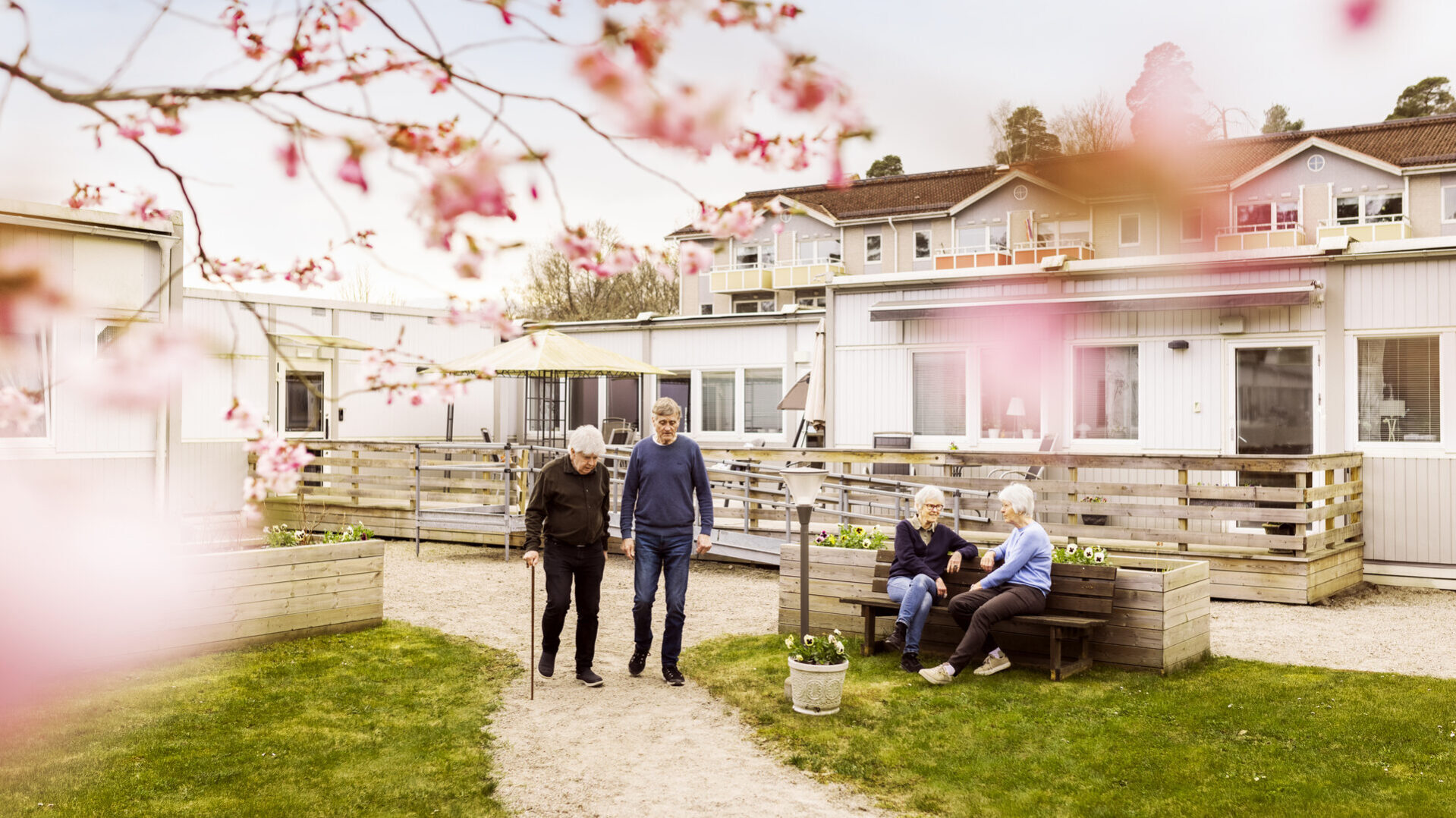 Patienterna kan enkelt ta sig ut på den stora altanen och tillbaka, utan risk att gå vilse, tack vare ett omgärdande staket. Boendet ligger också på tryggt avstånd från större vägar.