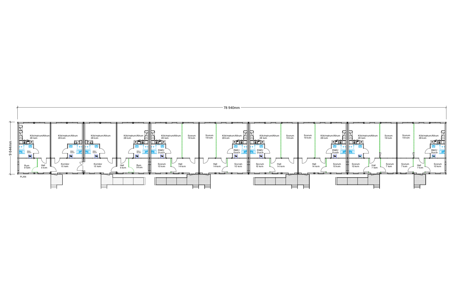 Totalt är uppställningen på 10 stycken lägenheter, allt från 1 rum och kök till 4 rum och kök, allt för att passa de varierade behoven. Expandia står som totalentreprenör förutom markarbetet. Det betyder att vi inte bara ser till att lokalerna kommer på plats utan även har ansvar över möblering, lås och nyckelhantering under hyrestiden.