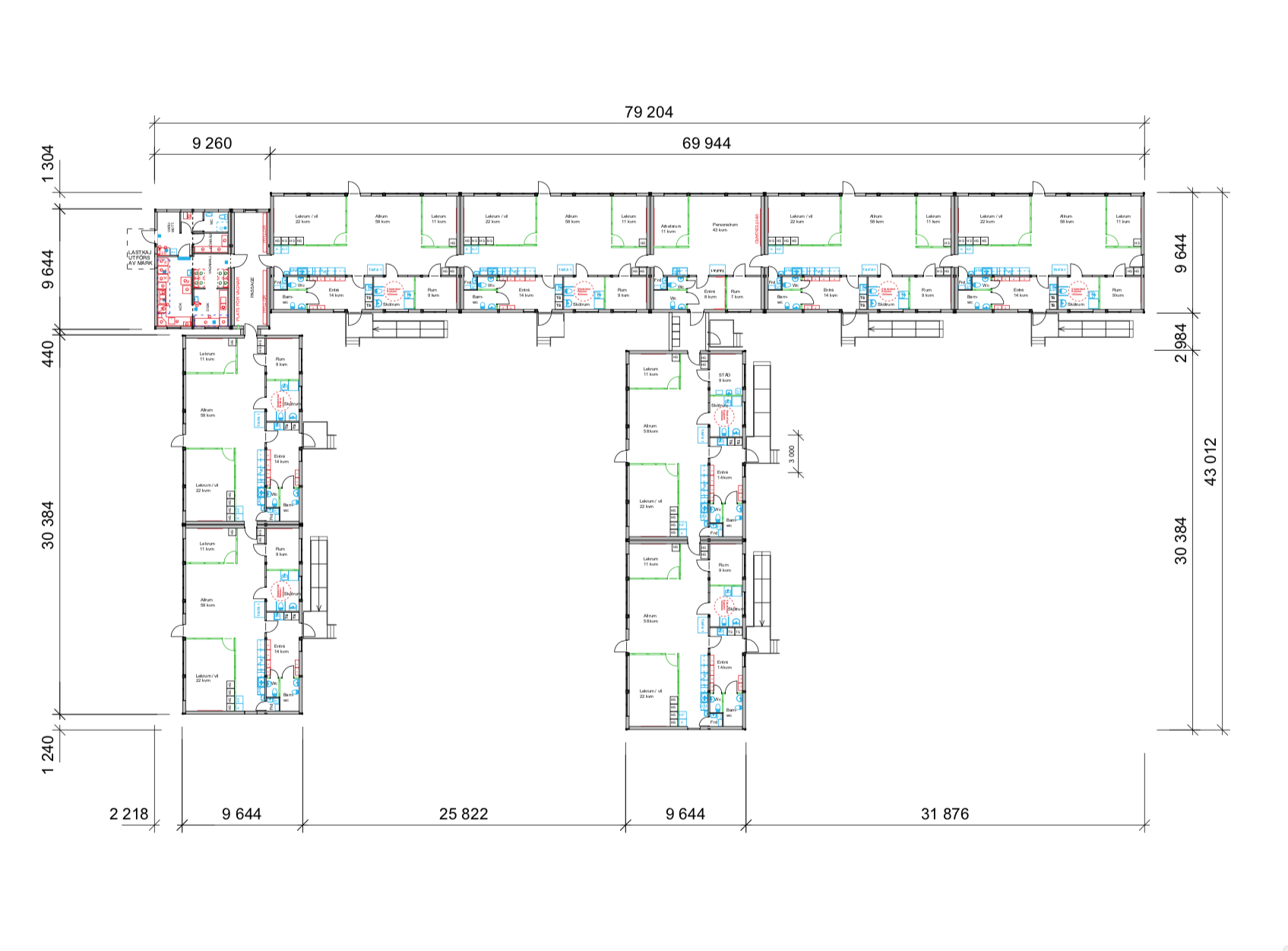 46 moduler med 8 avdelningar