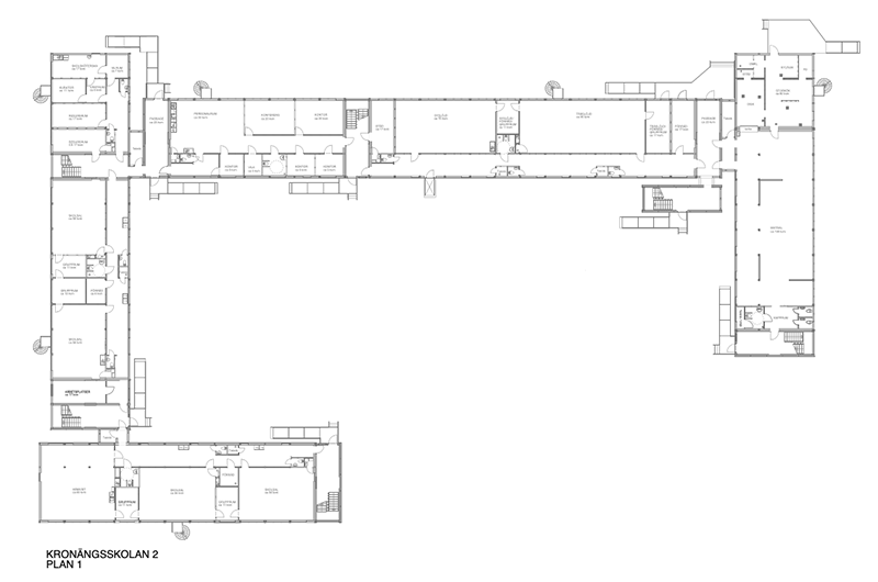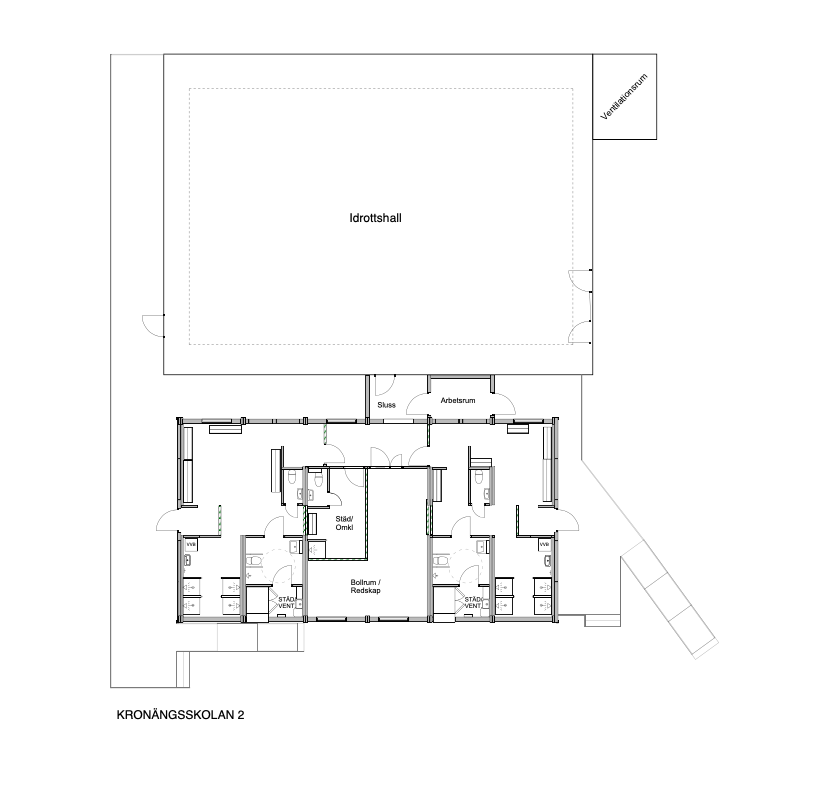 Kronängsskolan på Gässlösa är i två plan och har byggts upp i två etapper som två separata byggnader med komplett utrustade storkök, matsalar, slöjdsalar för textil, trä och metall, bibliotek och personalrum.