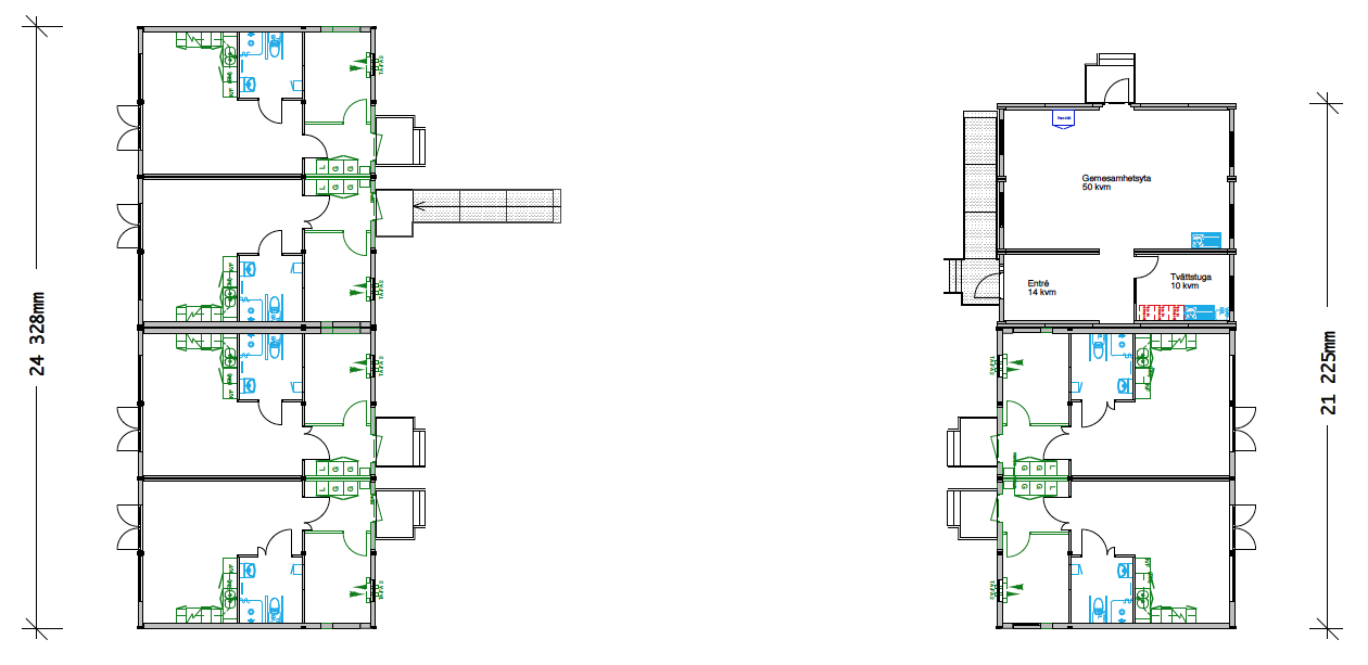 De 15 modulerna är en kombination av Expandias boendemoduler, B2000, och våra kontorsmoduler, K2000.
